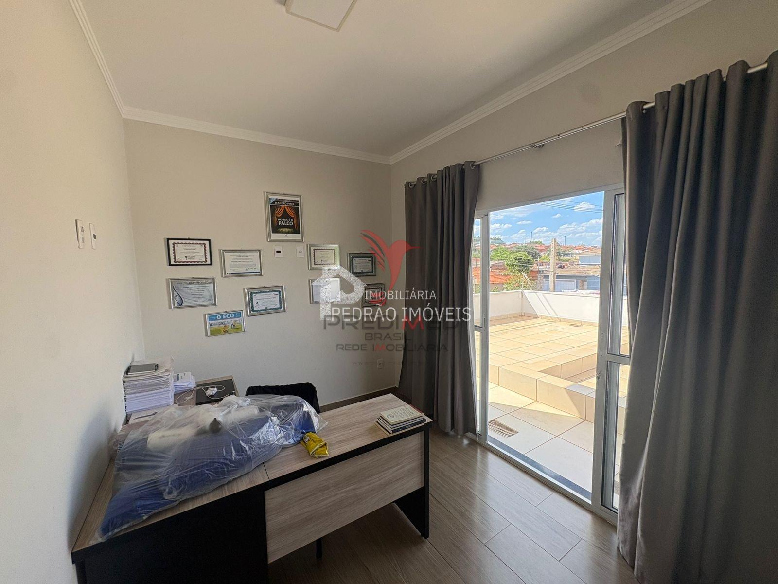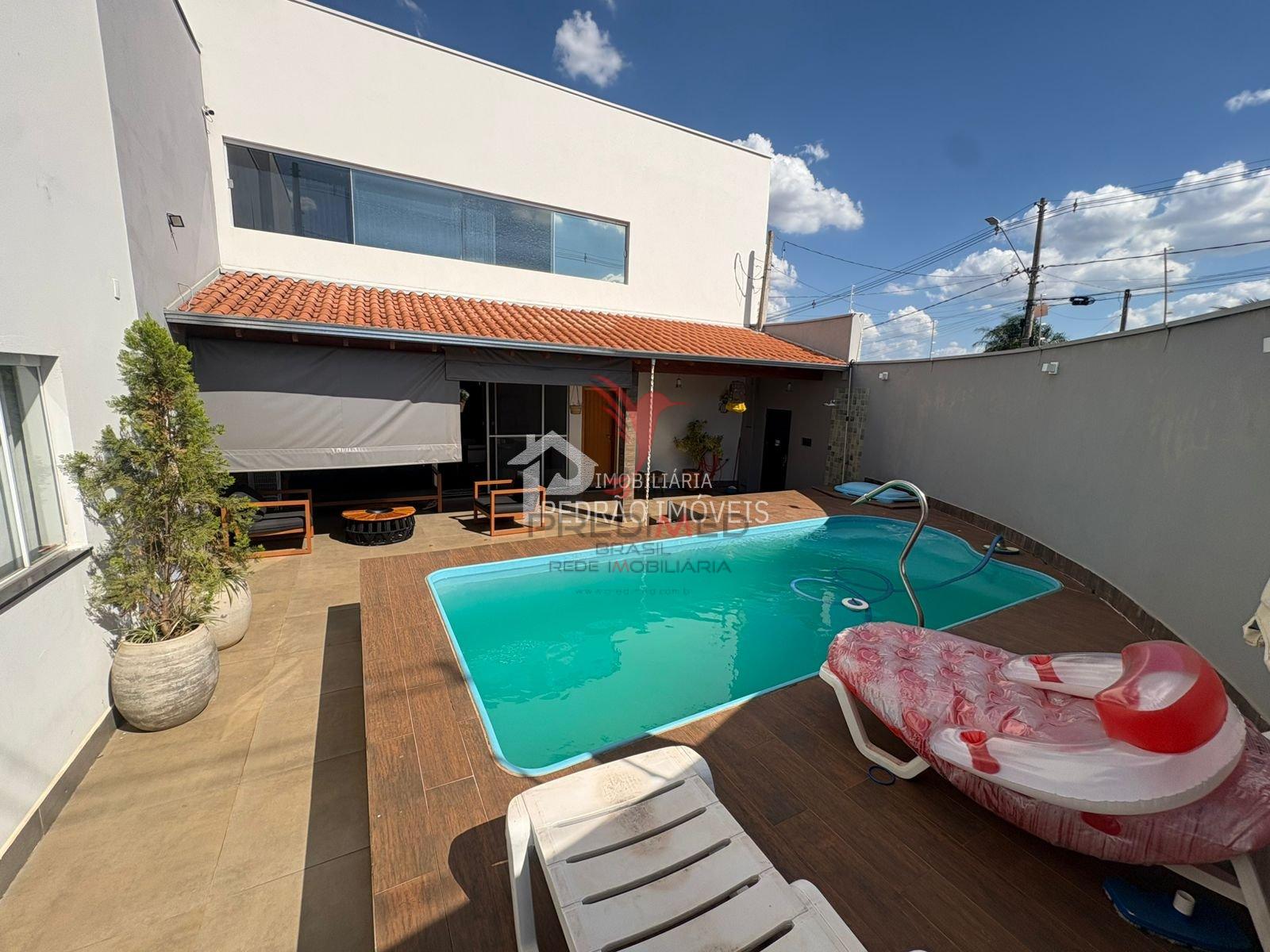 Apresentamos um belíssimo sobrado com 4 dormitórios sendo duas suítes e uma com closet, wc social, lavabo, sala de tv, sala de estar, sala de jantar, cozinha planejada, piso porcelanato, laje com acabamento em gesso, lavanderia coberta, área gourmet, wc social externo, piscina, área comercial com 4 salas, wc social, deposito, garagem coberta para 2 autos, portão fechado basculante automatizado, portão social fechado. Localização excelente, em região valorizada e próxima a serviços essenciais, comércio e vias de fácil acesso. Agende ja sua visita! Obs: Aceitamos permuta por imóvel na região ou chácara.